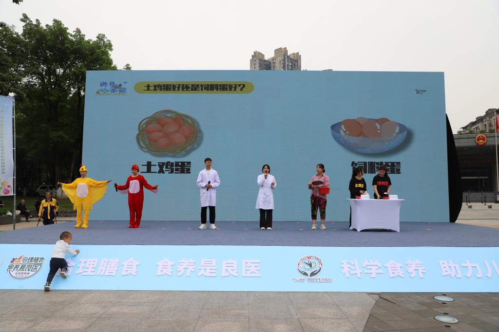 5月15日上午,由重庆市卫生健康委员会牵头,在江北区石子山体育公园广场举行重庆市2023年全民营养周暨“5·20”中国学生营养日活动启动仪式。我校为本次启动仪式积极筹划了两个科普小品表演《失恋了,喝什么?》和《土鸡蛋好还是饲料蛋好》,小品通过学生动形象的演绎,介绍了几种饮品的优缺点以及土鸡蛋和洋鸡蛋营养成分的区别及如何选择食用。节目形式生动活泼,从大众生活出发,聚焦老百姓最关注的营养科普常识,表演现场赢得了观众的热烈掌声和好评。