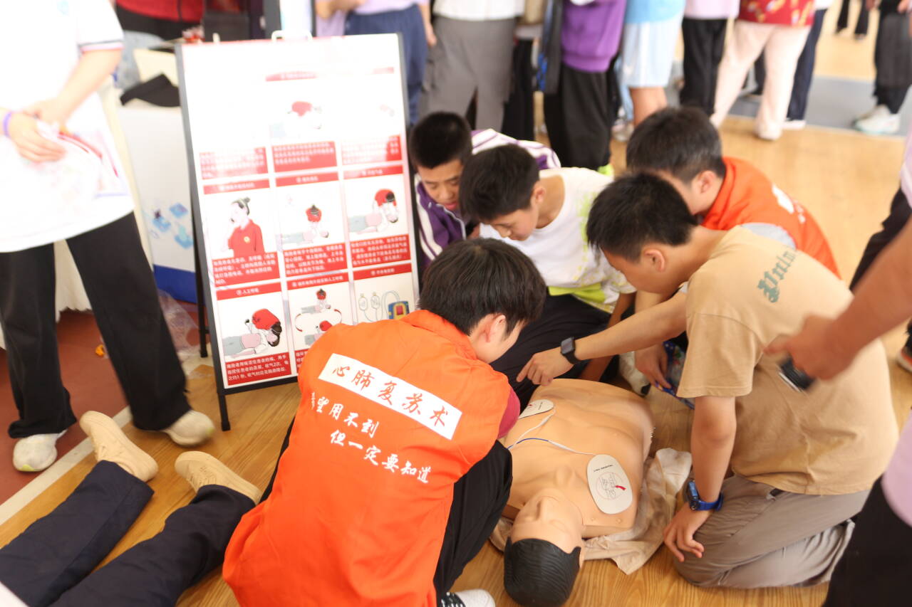 现场,急救科普团队聚焦应急救护,现场演示心肺复苏、气道异物梗阻等实用急救技能,通过模拟道具指导参与者实操练习,强化应对突发状况的能力,为生命安全科普“保驾护航”。