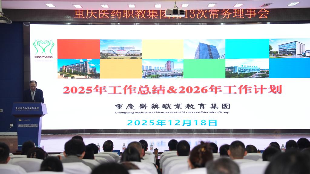 12月18日,重庆医药职业教育集团第十三次常务理事会在澳门电子pg游戏官网隆重举行。来自成渝地区等96家医院、企业、兄弟院校的148位领导专家齐聚一堂,紧扣“十五五”发展要求与成渝地区双城经济圈生物医药和大健康产业发展需求,共商产教融合、医教协同发展大计,助力集团高质量发展与学校升本攻坚。会议由学校副校长姜理华主持。