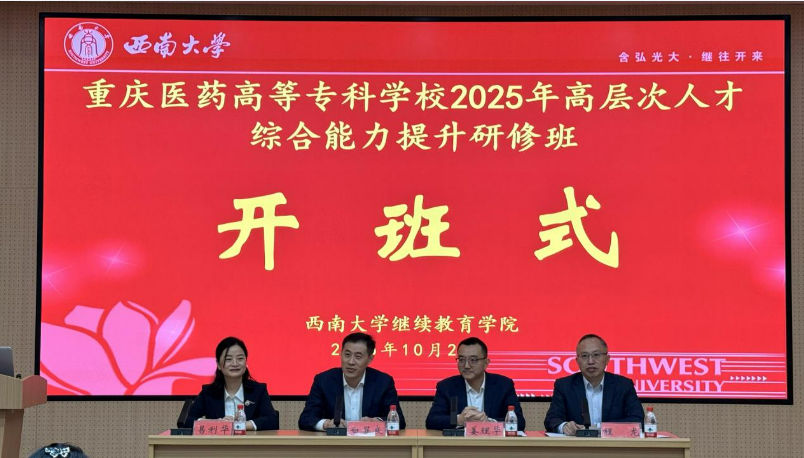 开班仪式上,西南大学党委常委、副校长白显良在致辞中对研修班的顺利开班表示热烈祝贺,并希望以本次培训为契机,深化两校合作。学员代表罗浩轩老师表示将以饱满热情投入研修,不负学校期望,争当医药职教创新发展的中坚力量。最后,澳门电子pg游戏官网党委委员、副校长姜理华就办好此次培训提出四点要求:一是端正学习态度,潜心钻研思考;二是坚持学思结合,推动实践创新;三是加强交流互鉴,促进协同合作;四是严守培训纪律,展现良好风貌。