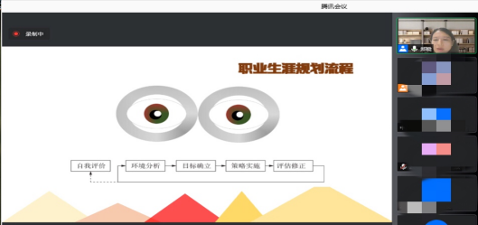 讲座一开始,郑老师就同学们毕业后从事什么样的职业问题,让同学们进行交流,用具体数据分析了当前不容乐观的就业前景,图文并茂地讲解了职业生涯规划的内容、特征和实践步骤,以及如何指导大学生进行职业生涯规划。