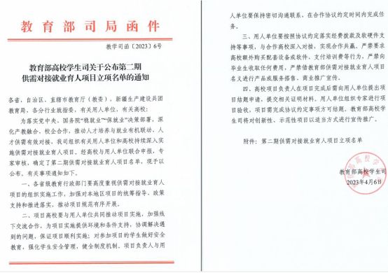 本次教育部供需对接育人项目的成功立项,既是对我校长期以来深入开展产教融合就业育人工作的充分肯定,也为我校全面推进校企协同育人探索出了新的道路。下一步,我校将以立项项目为牵引,进一步拓宽人才培养思路,强化就业育人实效,深入对接用人单位,强化项目过程管理,细化项目合作内容,推动人才培养与就业有机联动、人才供需有效对接。
