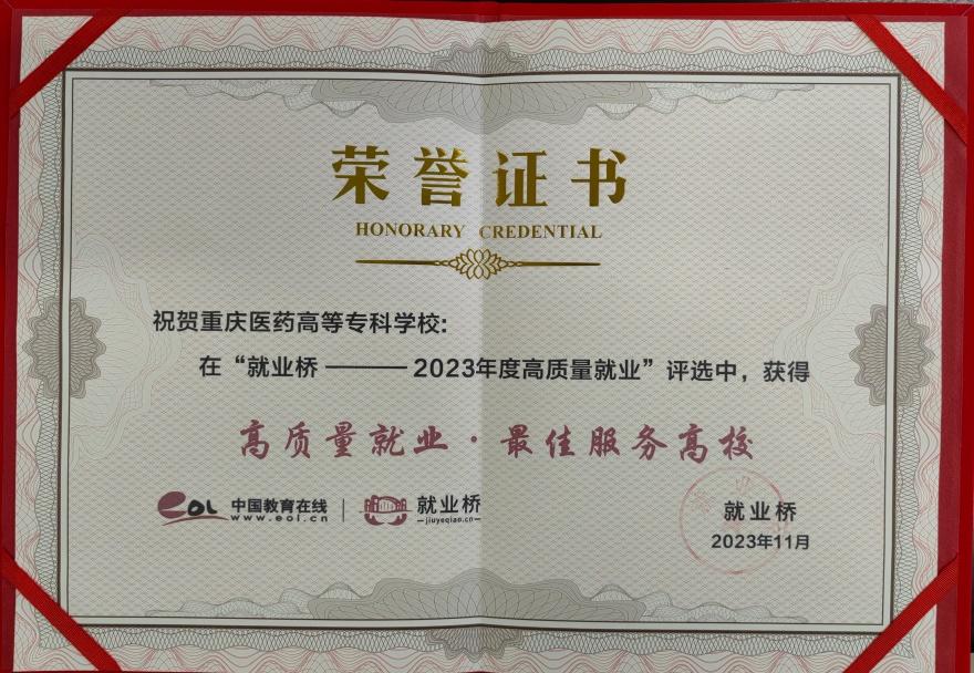 为深入贯彻党中央、国务院“稳就业”“保就业”决策部署,挖掘就业工作典型,中国教育在线举办了“2023年高质量就业”优秀院校评选活动,表彰在就业工作中表现突出的高等院校,推动就业工作不断迈上新台阶。在此次活动中,我校成功荣获“2023年高质量就业˙最佳服务高校”荣誉称号。
