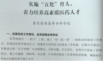 经学校申报、专家评选等环节,我校招生就业处申报的案例《实施“五化”育人,着力培养高素质医药人才》、中医学院申报的教师指导案例和学生就业案例在全市高校100多例申报案例中脱颖而出,被重庆市高等学校学生管理工作研究会评选为重庆市2023届高校毕业生就业创业工作典型案例,首次获得学校申报的3个案例均入选的佳绩。