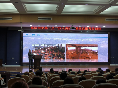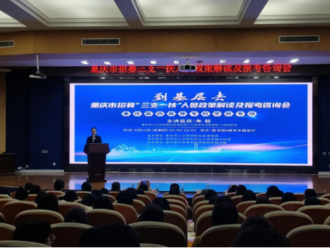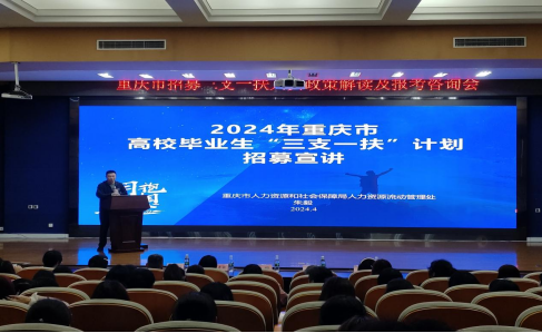 为广泛宣传“三支一扶”计划相关政策,进一步扩大“三支一扶”政策知晓率,鼓励和引导更多的高校毕业生投身到基层教育、农业、医疗卫生、乡村振兴等基层服务项目中,切实为基层输送更多优秀人才,4月11日下午,在学校图书馆六楼学术报告厅举行了重庆市2024年“三支一扶”人员政策解读及报考咨询会。重庆市人力资源和社会保障局人力资源流动管理处三级调研员朱毅、石柱土家族自治县黄鹤镇党委副书记吕登科、綦江区郭扶镇卫生院办公室主任王海俊,我校招就处副处长王志虹出席会议,学校200余名学生参加了咨询会。