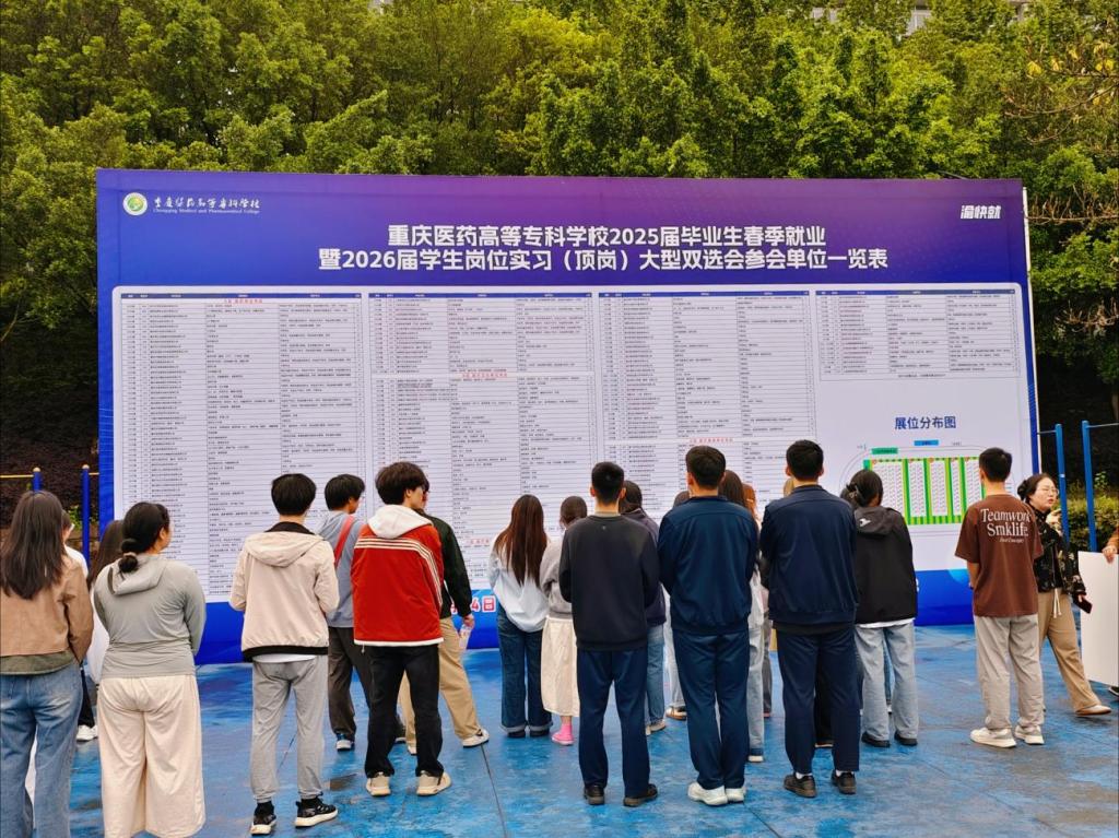 作为学校2025年“春季就业攻坚行动”的重要举措,本次双选会围绕“服务学生高质量充分就业,助力企业高质量发展”这一主旨,吸引了我校以及重庆医科大学、遵义医科大学等兄弟院校近5000名毕业生和219家用人单位携7000余个医药卫生相关岗位参与,搭建了西南地区较大规模的医药卫生类人才供需平台,为推动国家卫生健康事业发展作出积极贡献。