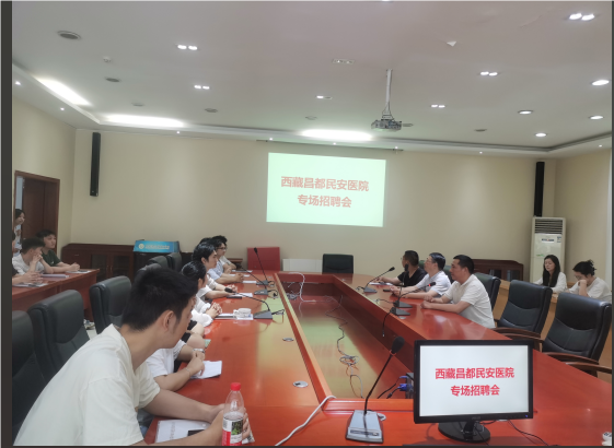5月22日14:30,西藏昌都民安医院专场招聘会在我校图书馆六楼会议室举行。临床医学院、医学技术学院及重庆三峡医药高等专科学校的40余名学生参与活动。