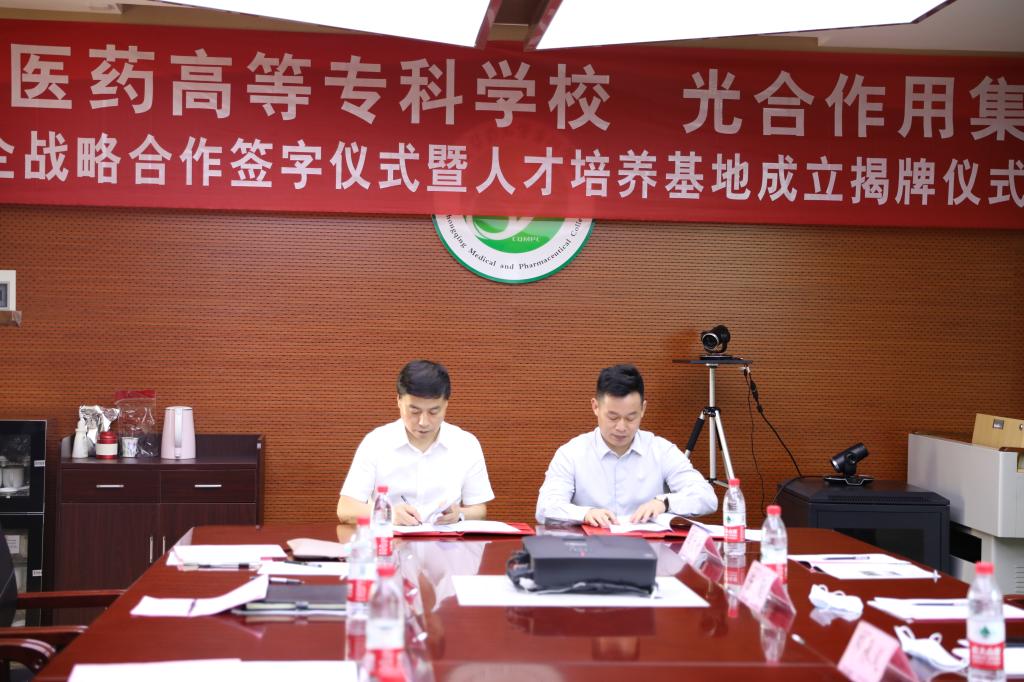 为贯彻落实国务院和重庆市教委关于“加快发展现代职业教育的决定”精神,6月15日下午,学校与光合作用集团校企战略合作签字仪式暨人才培养基地成立揭牌仪式在学校综合楼北楼609会议室顺利举行。光合作用集团副总裁邓承义、首席运营官邹一良及相关负责人,学校校长冯连贵、副校长唐全、招生就业处和医学技术学院负责人出席仪式。