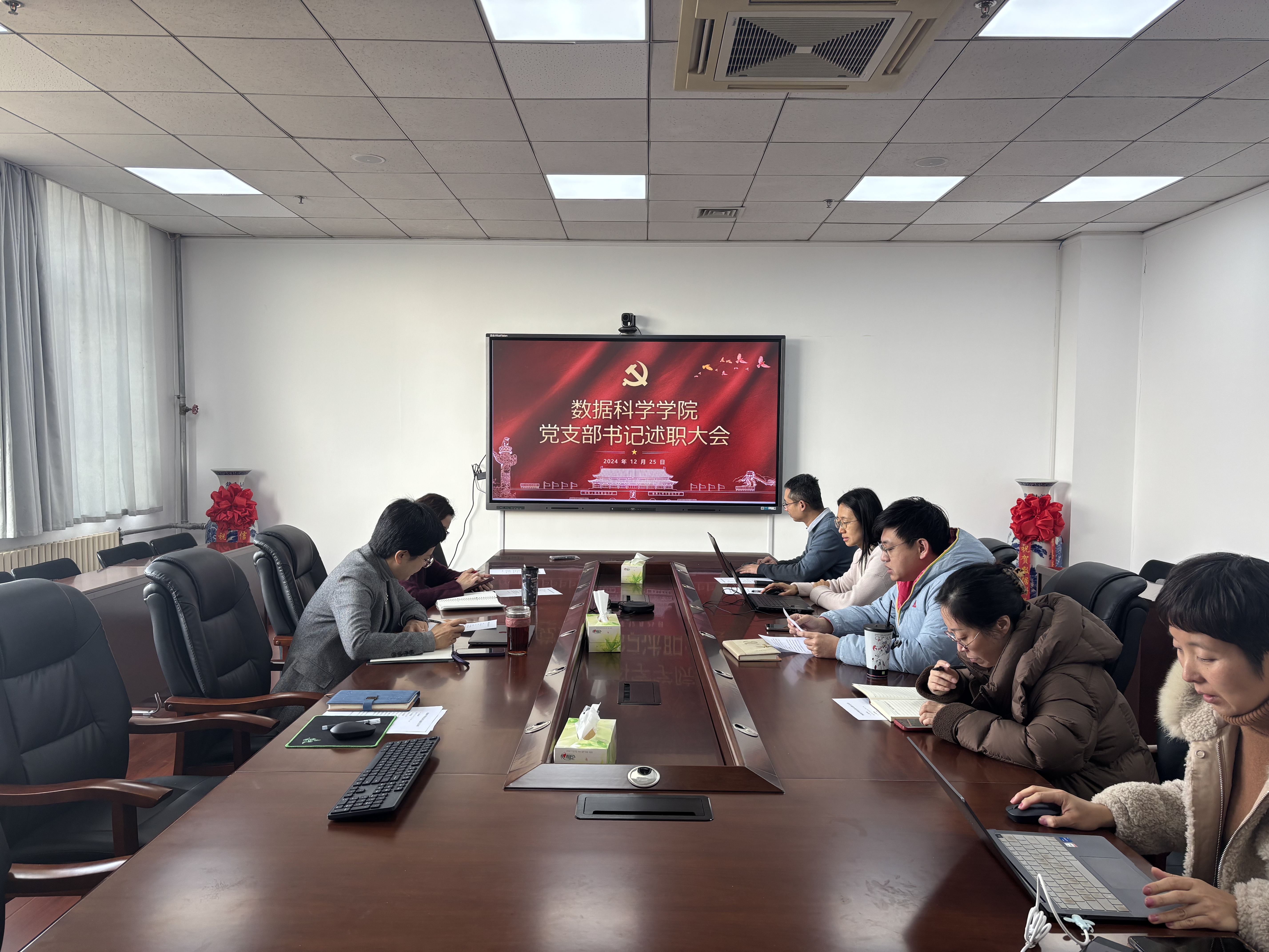 12月25日,beat365正版唯一官网必一党总支于图书馆A区5004召开2024年度党支部书记述职大会。学院党总支书记张玉主持会议,党总支副书记兼副院长顾姗姗,党总支统战委员李辉,党总支纪检委员、教工第一党支部书记陈卓,教工第二党支部书记孙靖,研究生党支部书记王宜敏,党总支青年委员、本科生党支部书记姜国华,组工干事卞文馨参加会议。