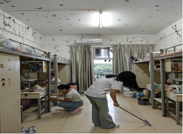劳动过程中,同学们互相帮助,彼此间的交流让大家淡忘了离家愁绪,同时更好地培养了室友之间的合作精神与协作能力,进一步提高了大家的劳动意识。