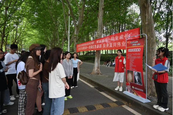 启动仪式上,红岩志愿者服务队在学校林荫大道举办“传承红色基因·投身复兴伟业”主题宣讲活动暨“红岩精神永放光芒”图片展,为师生铸牢“红岩魂”,为活动突出“红岩味”。本次红岩精神宣讲重点展示了“满目怆然白公馆”“精忠报国明丹心”“矢志不渝不坠青云之志”“红岩英魂永飘扬”“十四载沉浮心不灭”“青竹风骨钧酷刑”“仰天长诵家国在”“傲骨铮铮壮士魂”“慷慨高歌唾敌寇”“囚歌高唱铭傲骨” 等十个栏目,志愿者们通过讲、诵、展、演等艺术形式,生动演绎革命事迹,宣传阐释革命精神,让更多同学知红岩、懂红岩、爱红岩,更加深刻体会新中国的来之不易。