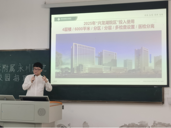 重庆医科大学附属永川医院招聘团队负责人李乐介绍了医院的基本情况和招聘岗位需求,护理学院党总支书记杨海英、院长唐万珍与招聘团队交流情况,介绍护理人才培养相关工作,并期待医院能给予学生更多就业机会,学校也将结合医院对学生职业能力的反馈,持续改善人才培养工作。