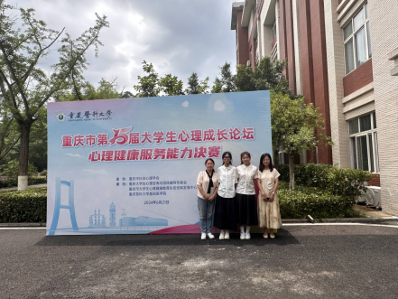我校由临床医学院黄渟惠、刘诗蓉、钱欣等6名同学组成参赛队伍,与来自西南大学、重庆医科大学、西南政法大学等16所高校的17支队伍在决赛中展开角逐,最终荣获“重庆市第十五届大学生心理成长论坛”心理健康服务能力决赛一等奖。