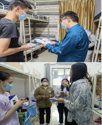 新生班的辅导员们还为第一批返校的同学们准备了精神食粮,精心挑选了书单,提前送书到寝,让书香满溢了宽敞明亮的每一个寝室;辅导员们还为返校的同学写了爱心小卡片,“见字如面”,让新生们对自己的老师有了第一次印象深刻的“亲密接触”。院部领导和辅导员们深入寝室,关怀同学的同时加强疫情防控与反诈的宣传和讲解。