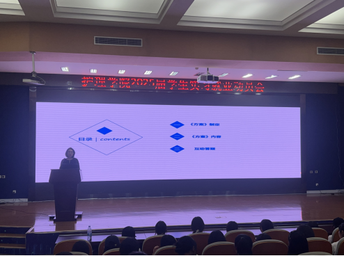 6月11日,护理学院在图书馆学术报告厅举行2025届学生实习就业动员大会,学院党政领导、辅导员、2025届全体学生参会。