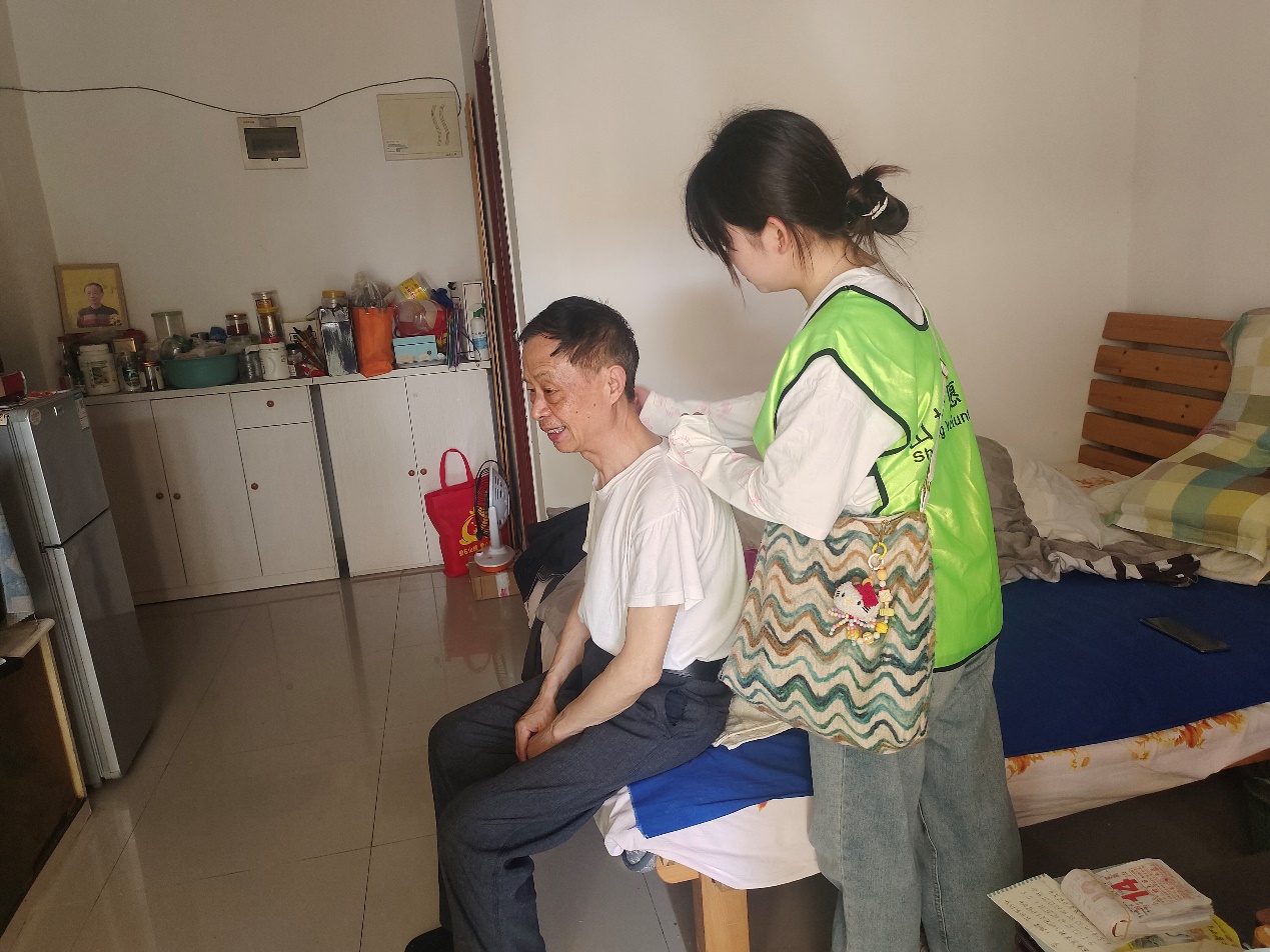 我们每一次活动看到这些孤单的独居老人,都怀着同理心去帮助他们,他们有些被伤病所困扰,我们需要给予他们更多的帮助与关怀。与他们聊天,我们也会学习到很多,比如面对病魔的乐观。他们有许许多多的困难,所以才需要我们志愿者去帮助他们。此次活动圆满完成。