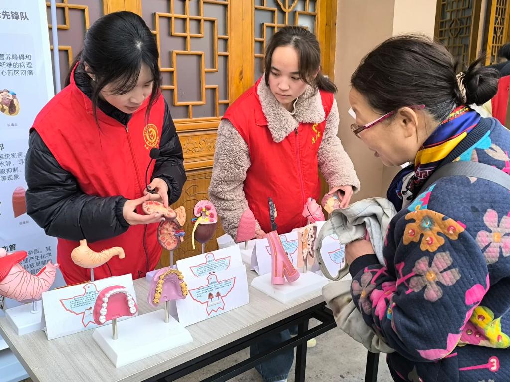 活动现场,志愿者们井然有序地开展各项卫生健康志愿服务项目。青春助力禁毒先锋队通过毒品危害人体器官模型展的形式,深入浅出地讲解毒品对人体健康的危害,特别是从医学角度分析毒品对神经系统、心血管系统的损害;急救知识科普团的志愿者边演示边讲述关于心肺复苏术、海姆立克法等急救技能的方法要领;雷锋服务队、岐黄医疗服务队、“睛”彩护眼服务队也通过用药安全指导、中医知识科普、爱眼护眼科普为居民带来丰富的卫生健康知识,将课堂上所学的知识运用到社会实践中,以实际行动诠释“医者仁心”的奉献精神。