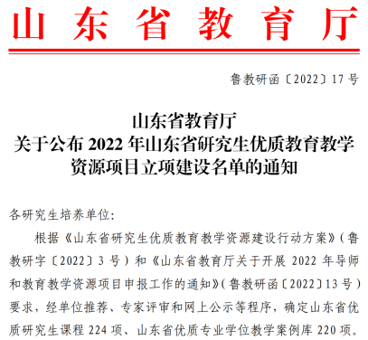 5.2022 年山东省研究生优质教育教学资源项目