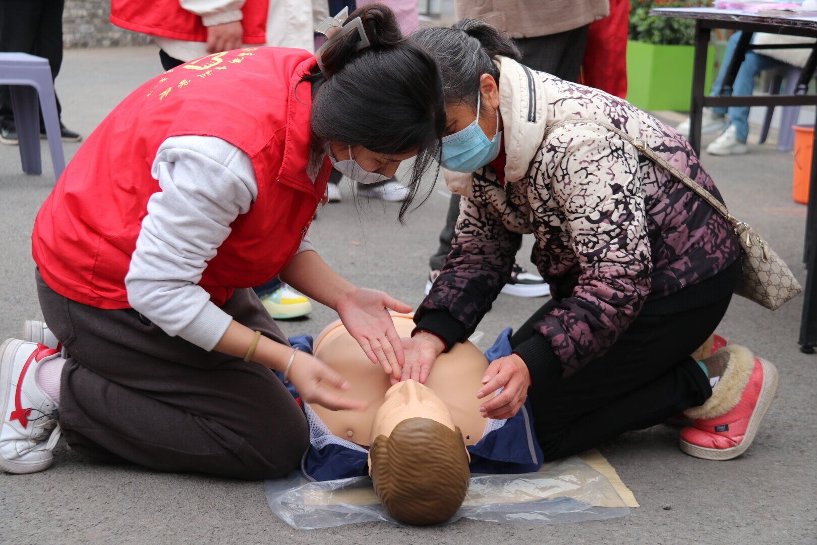 活动现场,校青年志愿者协会急救科普服务队利用人体模型示范心肺复苏术、海姆立克法等急救技能。边演示边描述按压前的准备工作以及操作的各项细节要领,指导居民如何在各种突发事件中进行有效急救,增强居民的健康意识,提高应急安全和自救互救能力。临床学院白求恩便民医疗服务队为居民宣讲防治结核病的知识,普及如何预防和诊断此类病症,并通过三角巾止血包扎教学讲解提高居民基本医疗技能;药学院(中药学院)雷锋服务队弘扬雷锋服务人民,助人为乐的奉献精神,将用药安全知识带到社区,汇集群众兑换过期药品,增强了家庭药品安全管理意识。医学技术学院的“晴”彩护眼服务队开展了眼部保健科普活动,通过开展视力检测,普及白内障等常见眼疾的知识,使社区居民意识到定期检查视力和关注眼部健康的必要性。中医学院的岐黄医疗服务队展现了中医专业的特色,将中医特色推拿按摩和艾灸体验融入到本次活动中,以中医的独特魅力为老年人带去身心的疗养。丰富的卫生健康志愿服务活动,吸引了广大居民的积极关注与热情参与,直至活动结束,大家仍意犹未尽,认为这次活动科普的医学知识很有帮助。