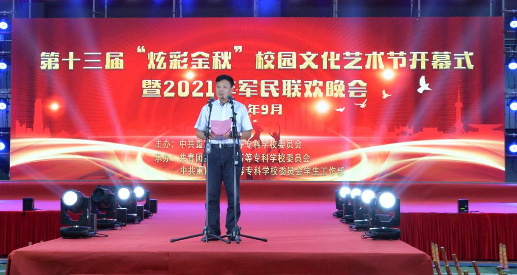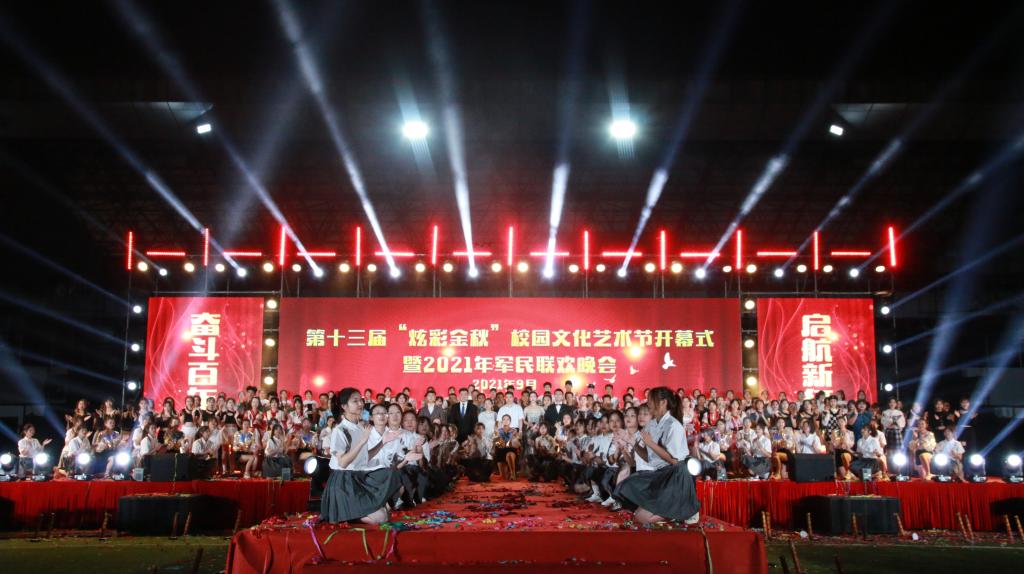 9月17日晚,由中共澳门电子pg游戏官网委员会主办,共青团澳门电子pg游戏官网委员会、中共澳门电子pg游戏官网委员会学生工作部承办的第十三届“炫彩金秋”校园文化艺术节开幕式暨2021年军民联欢晚会在学校风雨球场举行。学校校长冯连贵、党委副书记黄萌与大一新生、大二学生代表一起观看演出。党委副书记黄萌发表致辞并宣布开幕。