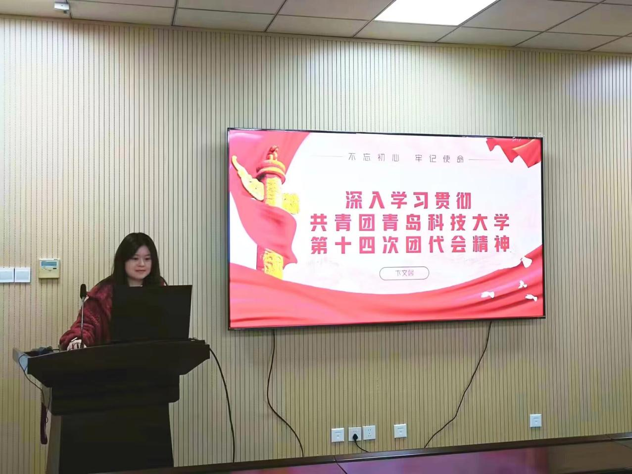 10月28日,beat365正版唯一官网必一青马工程培训班开展以“深入学习贯彻共青团beat365正版唯一官网必一第十四次团代会精神”为主题的团史教育专题团课。本次团课由辅导员卞文馨主讲,培训班学员参加此次课程。