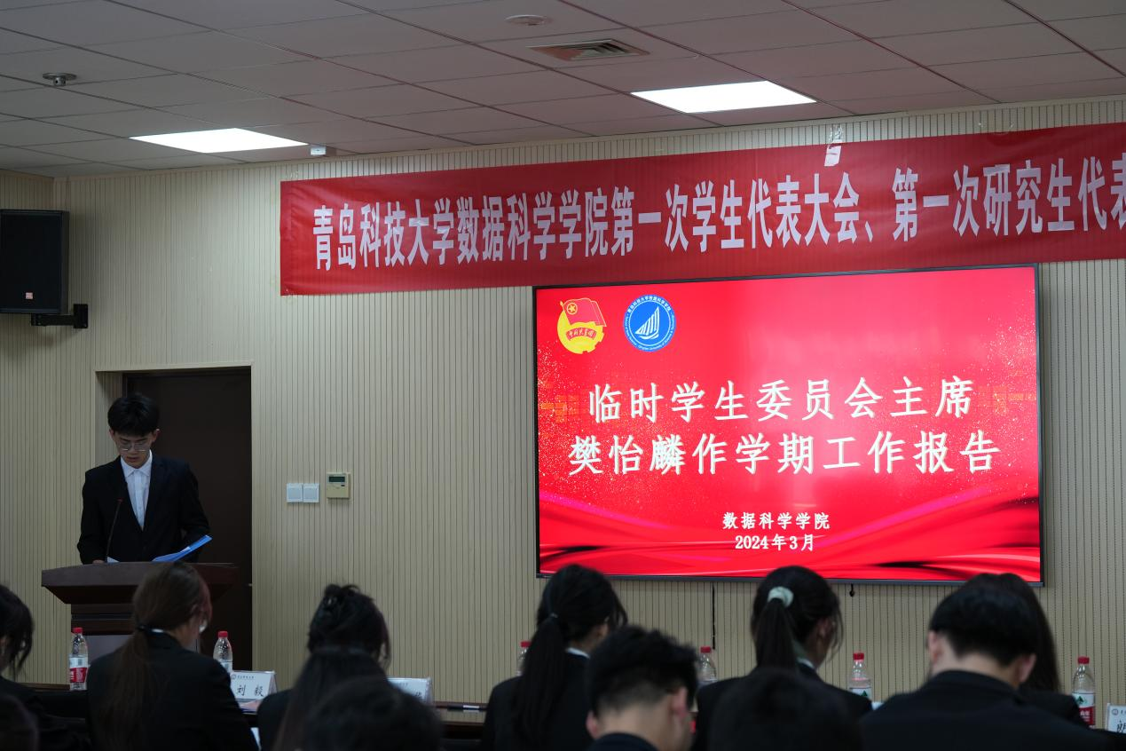 会议第二阶段,全体代表听取、审议并通过了樊怡麟代表学院临时学生委员会作学期工作报告,葛同澳同学代表学院临时研究生委员会作学期工作报告。