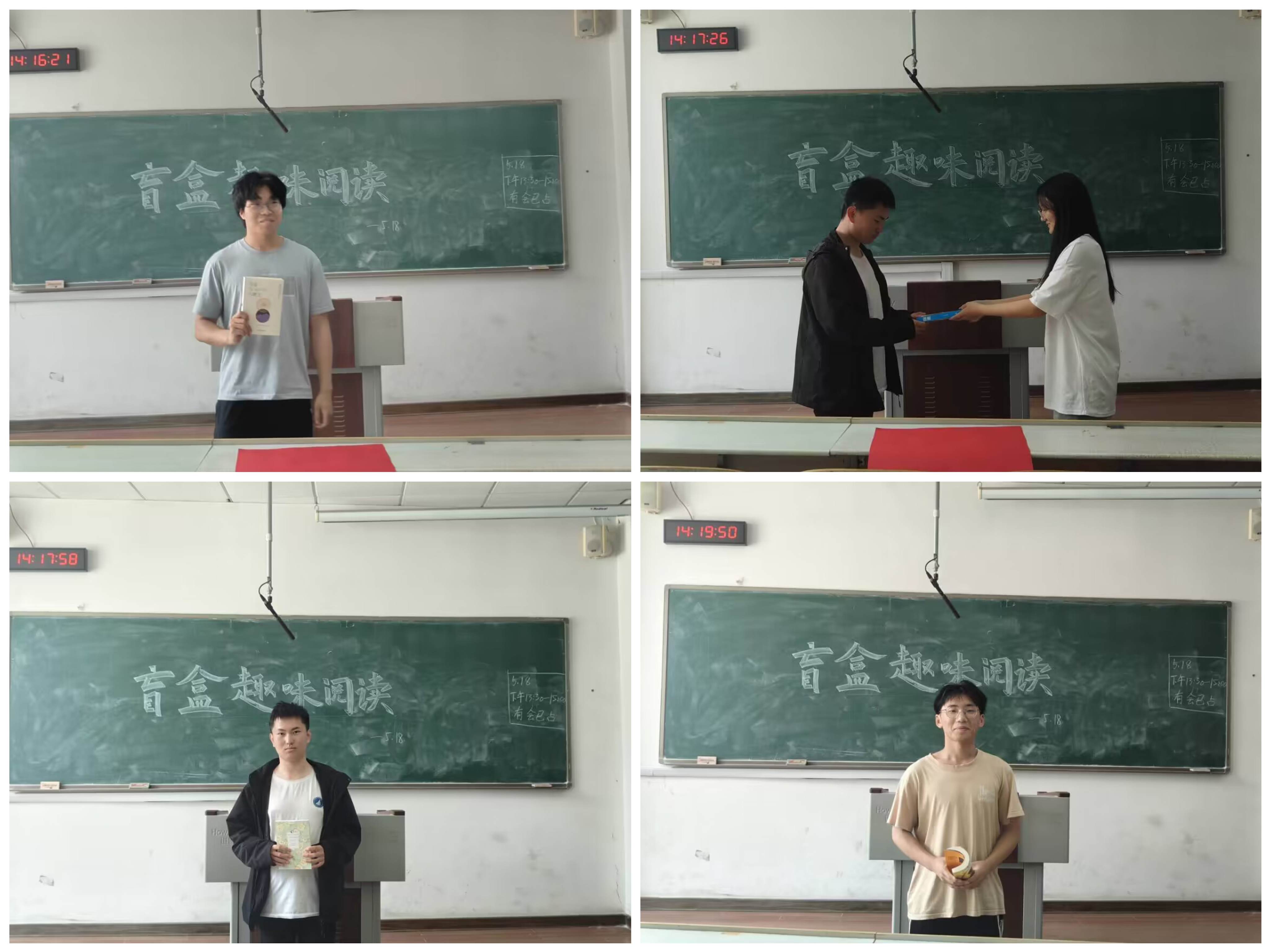 活动伊始,同学们便抽取了图书盲盒。在阅读过后,同学们依次上台介绍了自己抽取到的书籍的作者背景和主要内容,分享了精彩片段,并结合自身实际生活体验,从不同角度分享了读书时的所思所想、所感所悟。同学们认真聆听,在分享中用心感受,汲取经验,充分展现了beat365正版唯一官网必一同学们积极好学的精神风貌,呈现了一场内涵丰富、角度新颖的图书分享活动。本次活动受到同学们的热烈欢迎,获得了同学们的一致好评,让同学在体验拆“盲盒”快感的同时获得无可代替的精神食粮,不断提高着同学们的读书热情。