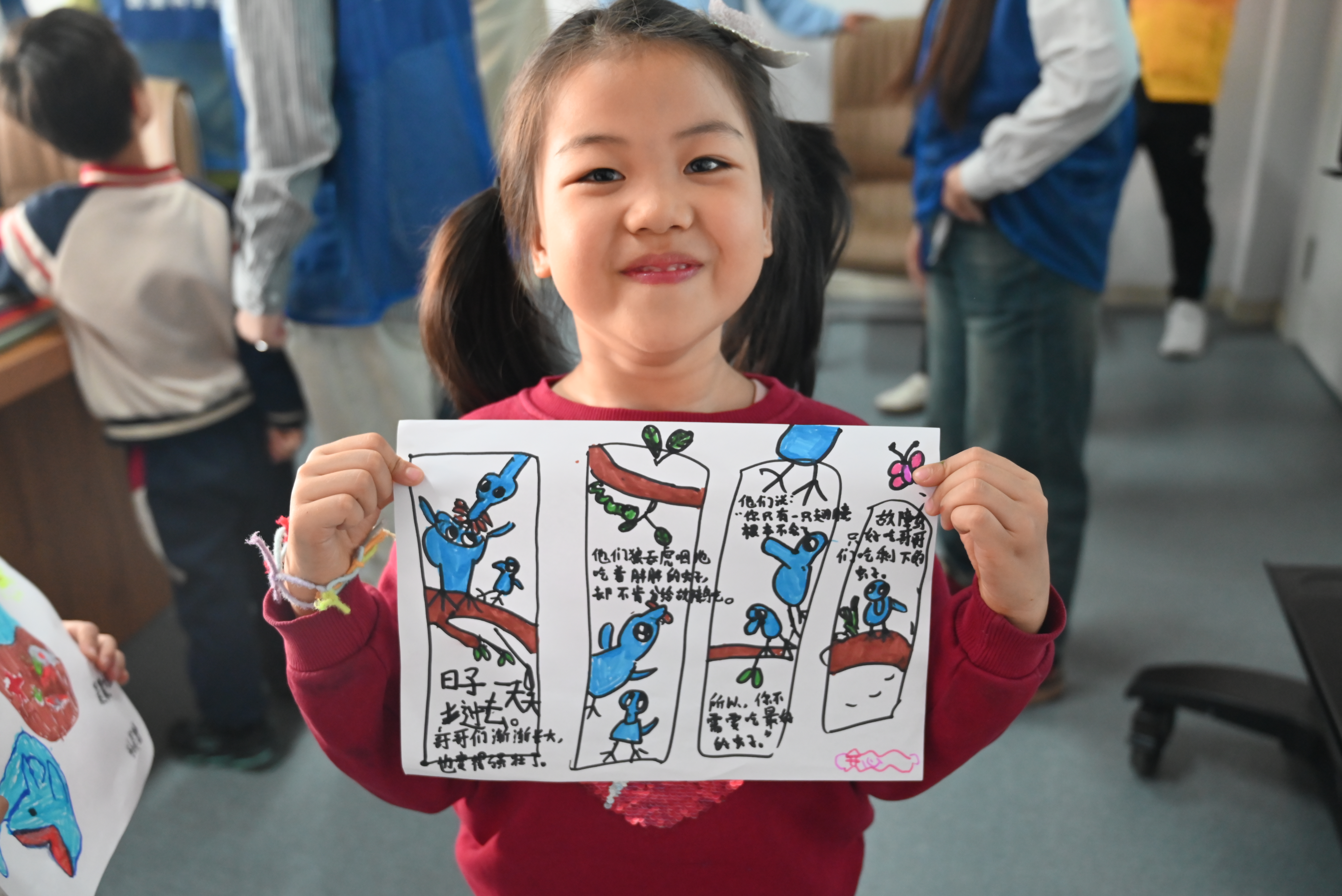 活动自4月11日启动以来,共举办了四期主题不同的伴读课堂。第一期活动以读书和才艺展示为主,志愿者引导小朋友们介绍自己,主动破冰,随后正式开始伴读活动。志愿者们带领着小朋友认真挑选了适合他们年龄段的书籍,通过互动式阅读,角色扮演等形式,让阅读变得有趣,调动了小朋友们的积极性。第二期活动则是以画画为主题,孩子们发挥想象力,用画笔描绘出自己心目中五彩斑斓的书中世界。第三期活动的主题是做手工,孩子们用树叶、花瓣等制作了一张张童趣盎然的书签、简报,以及各式各样充满奇妙想象力的手工艺品,不仅锻炼了动手能力,也提升了审美和创造力。第四期活动回归到读书和讲故事,孩子们在分享自己的故事的同时,也聆听了其他小伙伴的精彩故事,最后,每位参与的孩子都获得了颁发的奖状,以示鼓励。