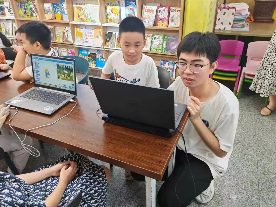 随后,宣讲团通过视频讲解和抢答互动环节,带小朋友们感受了机器语言的魅力,并利用Scratch少儿编程软件,引导小朋友们通过拖放编程积木来创建简单的动画和游戏。在帮助小朋友们理解编程逻辑的同时,激发他们的动手能力和创造力。
