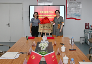 仪式中,顾姗姗与臧晓恩共同签订党建共建协议书,并共同为大学生社会实践基地揭牌。