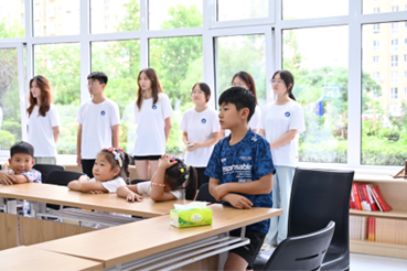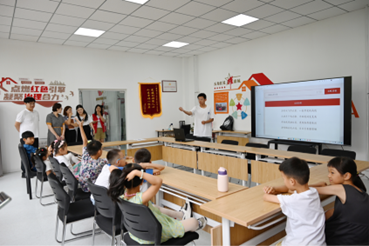 会后,beat365正版唯一官网必一师生代表同社区领导共同来到康城小区党群服务站,参观由beat365正版唯一官网必一“科普先行 智启未来”科普宣讲团向社区儿童进行的“探索人工智能的奥秘—AI奇妙屋”志愿宣讲。