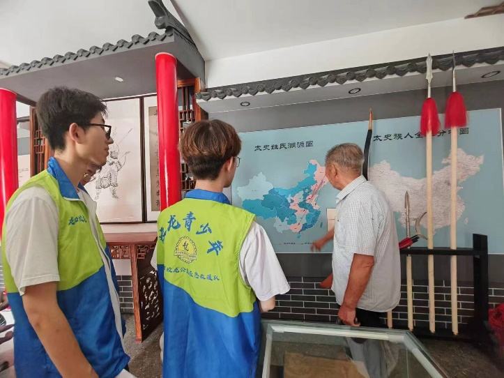活动中,志愿服务团的青年学生们首先来到了太史慈纪念馆。在纪念馆内,一幅幅珍贵的历史图片、一件件生动的文物展品,仿佛将大家带回了那个英雄辈出的时代。通过讲解员的生动讲解,学生们不仅了解了太史慈的英勇事迹,更深刻感受到了他忠诚、勇敢、智慧的人格魅力。同时,纪念馆还展示了羊沟营村近年来在保护传统文化、推动乡村振兴方面的努力与成就,让青年学子们看到了传统文化与现代发展相融合的美好前景。