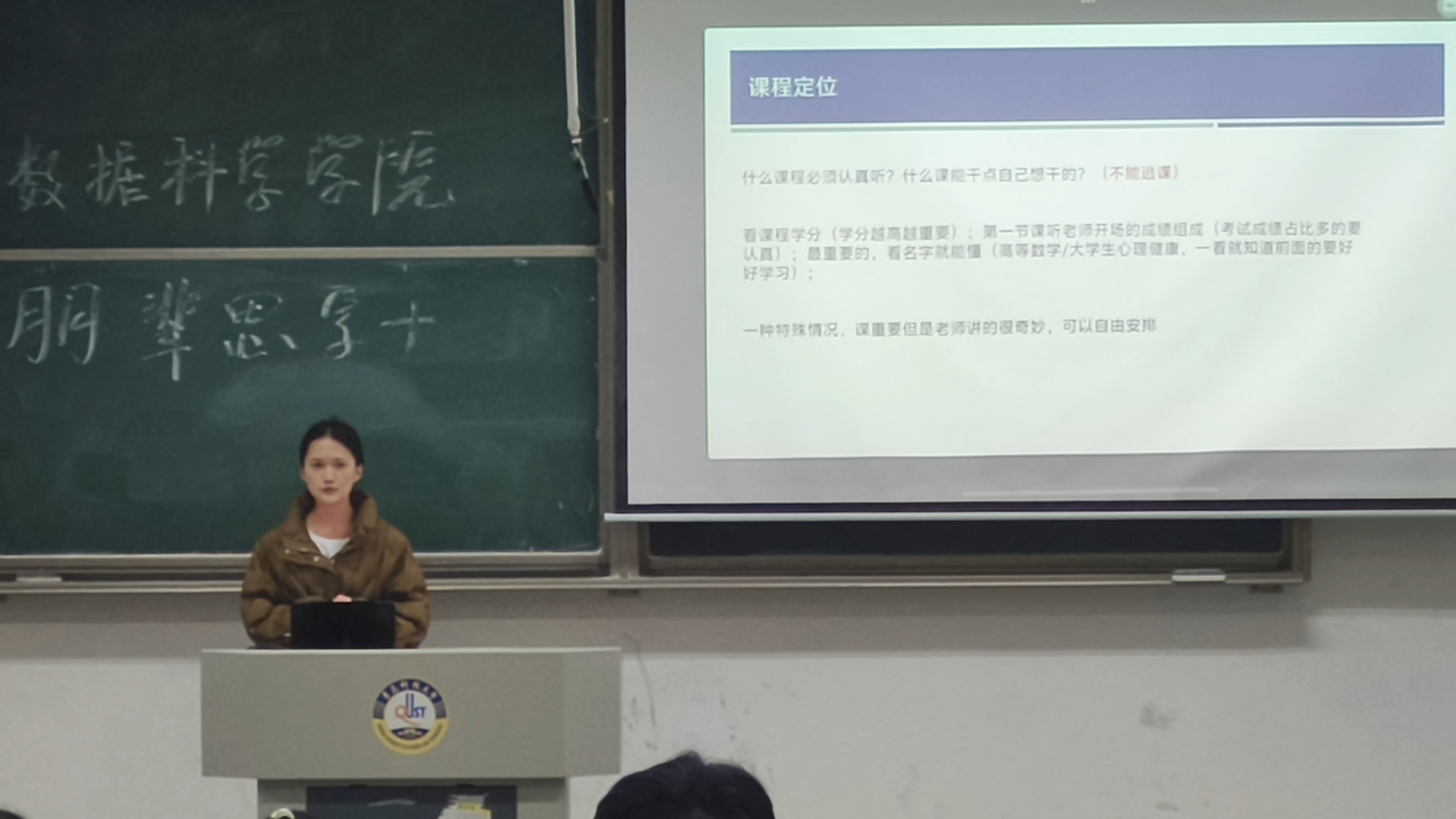 为帮助2025级新生精准掌握综合测评规则,科学规划大学学习生活,充分发挥朋辈榜样的示范引领作用,11月11日晚,beat365正版唯一官网必一延续“晚自习+经验分享”的特色形式,开展“朋辈思享+”之“学长学姐来帮你”系列经验分享会第三期,本次分享特邀优秀学生代表大数据242班孙洪茹担任主讲人,聚焦学业问题,为新生送上全方位、实用性强的综测与学习指导。