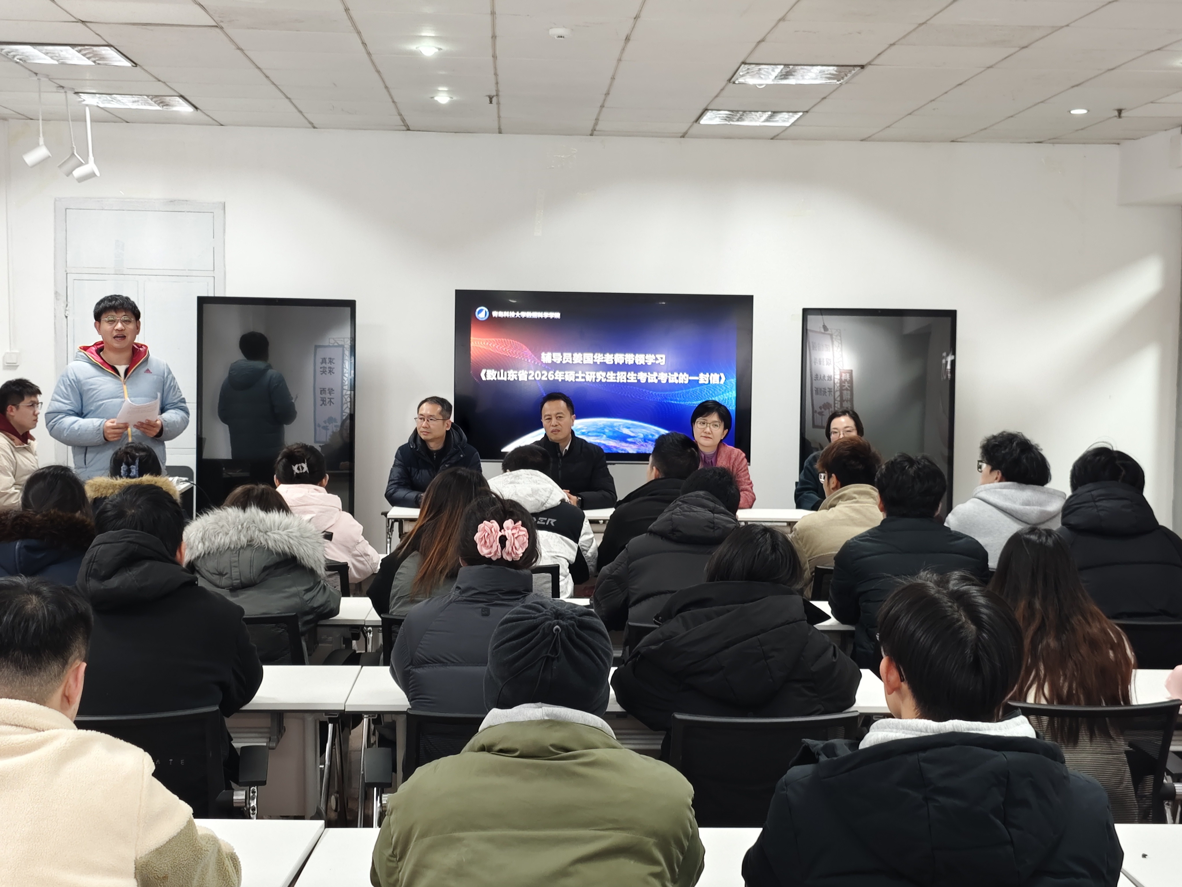 随后,姜国华带领全体学子共同学习《致山东省 2026 年硕士研究生招生考试考生的一封信》,围绕考试纪律、证件准备、答题规范、诚信应考等核心要求展开详细解读,重点强调智能安检、违禁物品管理等注意事项,叮嘱同学们严守考场规则,以严谨态度应对考试,避免因疏忽影响应考。会议最后,学院为考研学子逐一送上精心准备的“考研祝福包”,礼包内包含“一举成‘橙’”的橘子、寓意“甜甜蜜蜜”的棒棒糖、定制励志贺卡及实用考试文具,每一份礼物都承载着学院的深切关怀与美好期许。