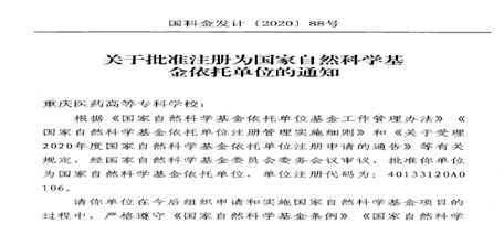 2020年11月,国家自然科学基金委员会委务会议审议通过,批准我校成为国家自然科学基金依托单位。国家自然科学基金依托单位资格的取得,将为我校申请国家自然科学基金项目、提高学术研究水平、培养专业技术人才提供重要平台。