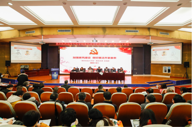为贯彻落实十九届中央纪委四次全会关于“注重家风建设,引导党员、干部修身律己、廉洁齐家,培养现代文明人格”的要求,将学校“家庭助廉”系列活动引向深入,12月14日下午,学校召开家风建设推进会暨“清风校园大讲堂”,全体在家校领导、副科级以上干部及部分关键岗位人员参会,重庆市纪委监委驻市卫生健康委纪检监察组副组长张冀,市卫生健康委机关党委办公室副主任孟庆芳出席会议,学校纪委书记、监察专员杨国祥主持会议。