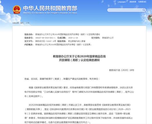 此次认定的国家精品在线开放课程(高职)共计99门,重庆市高职院校斩获12门,我校2门课程同时被认定,是获批门数最多的医学类院校。