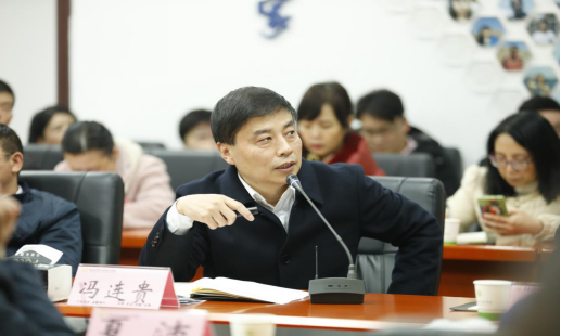 党委副书记、校长冯连贵从学校基本情况、2020年主要工作成效、年度党建工作督查指标完成情况、基础保障和职能绩效指标完成情况等方面作详细汇报。