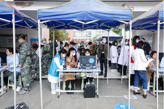 此前,学校领导亲临现场详细了解接种流程,认真查看各环节运行情况,并对医护人员和志愿者的辛苦付出表示感谢。