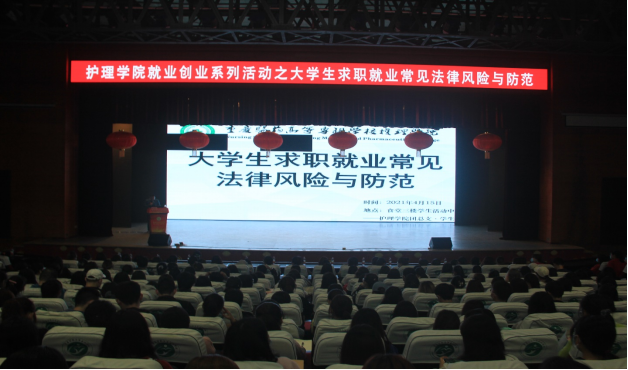 目前正是大学生就业季,立足学生关注的热点话题,讲座专题为“大学生求职就业常见法律风险与防范”。护理学院党政领导、全体辅导员、教师代表、大学生800余人参与讲座。主讲嘉宾是四川外国语大学副教授、硕士生导师、法学博士、西南政法大学兼职研究员、重庆人社局法律咨询专家徐新鹏,徐老师由案例分析入手,分别从求职、入职、离职三个方面进行了针对性的解读和分享,将反诈骗知识充分的融入到整个求职过程讲解中,深入的剖析各个环节的风险点,实战性非常强,讲解生动有趣,看似枯燥的法律知识却让在场的同学都听得津津有味,颇为受益。