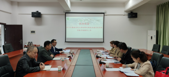 4月21日,市卫生健康委基层党支部标准化规范化建设工作第四督查组组长、市人口宣教中心副主任喻芳一行4人来校督查基层党支部标准化规范化建设工作。学校党委副书记黄萌,党政办、各受检党支部相关人员参与迎检。