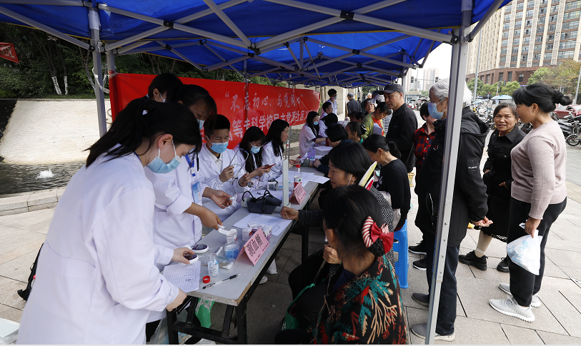 为增强社区居民对健康的关注,了解自身的身体状况,普及科普卫生知识,做到疾病早发现、早预防、早治疗。4月22日下午,澳门电子pg游戏官网民主党派教师团队和白求恩服务队的学生共计14人,到重庆市大学城学苑社区开展“不忘初心、与党同心”社区义诊活动。
