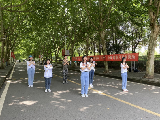 活动中,参与人员在签名墙上写下了自己关于心理健康感悟,青爱志愿者们为来往同学发放了心理健康教育与咨询中心宣传手册。随后,志愿者们以快闪的形式在学校十字路口、图书馆等地表演《送你一朵小红花》《我相信》《你真的真的很不错》手语操,赢得领导、老师、同学们的热烈掌声。