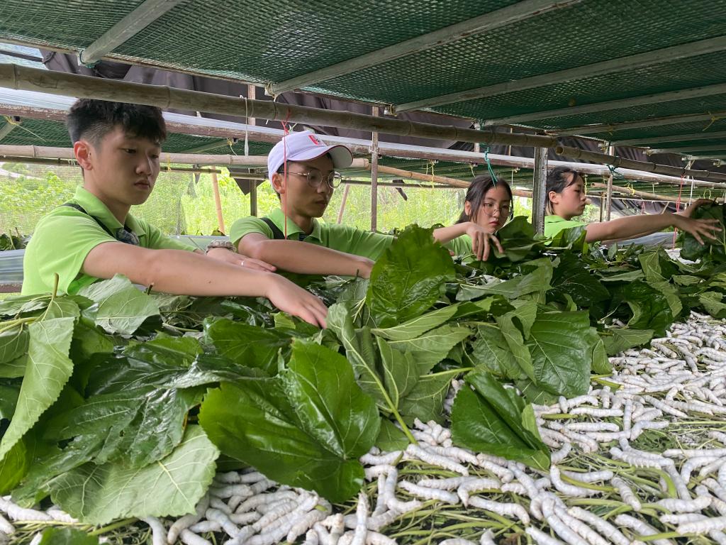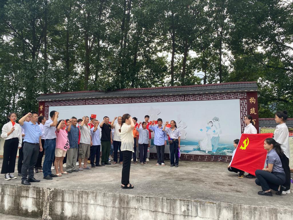 在太极乡太河村,志愿者们和村里的党员干部们共同开展了“薪火传承守初心,凝心聚力担使命”支部主题党日活动,开展微党课宣讲、重温入党誓词,并与党员们交流互动、抢答党史知识,捐赠、推荐党史学习书籍。蚕桑产业是太河村的主导产业,时下正值夏蚕养殖的关键时期,志愿者们积极投身劳动实践,参与到摘桑叶、喂蚕等产业劳动中。活动期间,志愿者们还结合自身医药卫生院校的专业特长,利用赶集日在太极乡集镇开展了“投身乡村振兴 助力健康中国”主题义诊活动,为过往群众免费测量血压、血糖、嗅觉、视觉,科普高血压、糖尿病等常见并发症知识等。