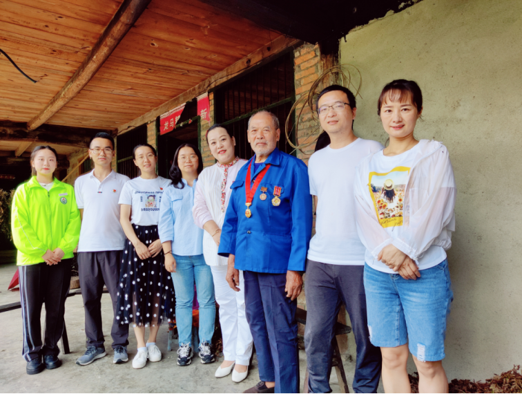 听峥嵘故事,传承红色精神。“我入党好几十年了,这是刚领的奖章…”一进门,94岁的李元方老人满脸骄傲向志愿服务队展示获得的“光荣在党50年”纪念章,讲述他参加抗美援朝的故事。战争虽然残酷、艰辛,但老人为能为祖国和平贡献力量感到骄傲。这样的觉悟认识让志愿服务队的同学和老师都十分钦佩,深受教育。
