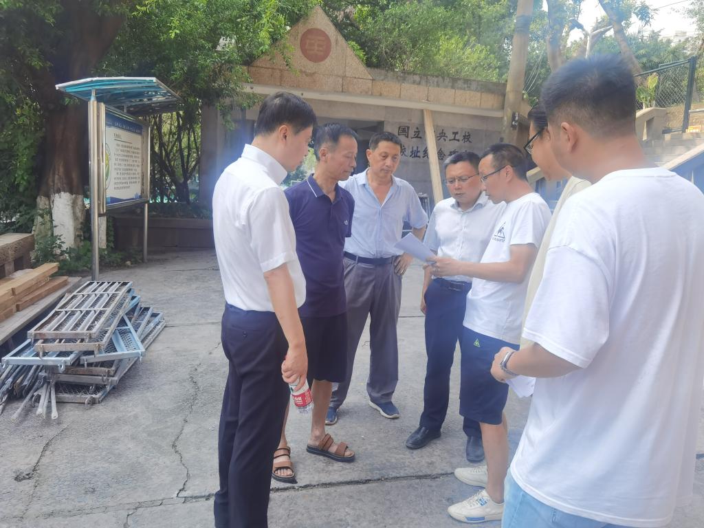 为进一步改善沙坪坝校区师生的学习生活环境,全力推进沙校区综合治理工程,保障新学期新老学生按时入学,7月28日,学校校长冯连贵,副校长、新校区建设指挥部指挥长唐全,新校区建设指挥部综合办、工程部、材料部负责人利用暑期休息时间,冒着酷暑来到沙校区远志楼和教学楼改造工程施工现场,召开指挥部现场办公会,力求最大限度节省沟通协调时间。冯连贵指出,要扎实做好各项改造工程,保质保量完成工程建设任务,努力提升校区师生获得感、幸福感。他强调,必须时刻绷紧安全生产这根弦,压实责任、层层传导压力,全力做好高温季节下的安全建设工作,做到“三确保”:确保施工安全、确保人员安全,确保工程按期完工。