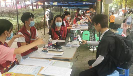 清晨,迎着曙光,药学院(中药学院)党政领导、辅导员老师、志愿者和工作人员早早等候在行知路的林荫大道上了。完成校门口的疫情初检后,新生们在志愿者学长学姐的指引下,就来到学院进行报到。辅导员老师和志愿者们以最热情的笑容和最暖心的语气,细心介绍报到程序,进行健康检测、身份验证、扫码签到,并安排住宿。