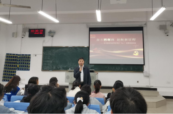 10月19日,校党委副书记、校长冯连贵走进思政课堂为2021级护理专业同学作习近平总书记“七一”重要讲话精神专题宣讲。