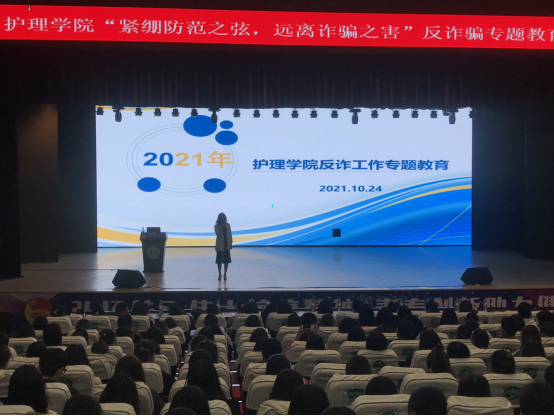 为切实强化学生防诈骗意识,增强学生反诈骗能力,杜绝诈骗案件的发生,护理学院于10月24日在学生活动中心对全体学生开展全覆盖反诈骗专题教育,护理学院党总支书记杨海英主讲。