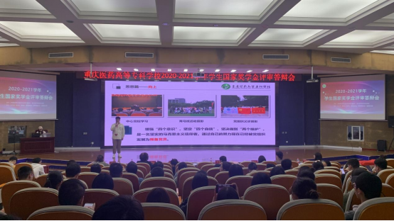 为了促进学校学风建设,扩大优秀学生的正面引导作用,根据重庆市教委关于国家奖学金评审工作部署,学校10月14日下午在图书馆六楼学术报告厅举行2020-2021学年国家奖学金评审答辩会。学校党委副书记黄萌,部分相关处室负责人以及21名各院部选拔的学生代表担任评委。